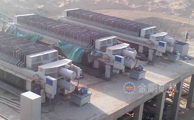 浸出槽最后的尾礦經(jīng)緩沖槽由泵輸送到全自動廂式壓濾機,壓濾后的水流入循環(huán)水池以備循環(huán)利用,濾餅經(jīng)帶運輸機運到尾礦堆場,卡車將尾礦運到尾礦庫。