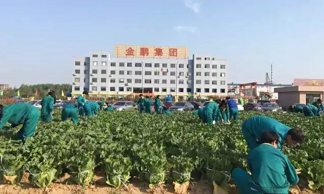 金鵬礦機11月18日清晨,金鵬集團利用早會時間組織全員一起把公司豐收的有機無公害大白菜進行窖藏,每個人臉上都洋溢著快樂自豪的喜悅,我參與,我收獲,我快樂!